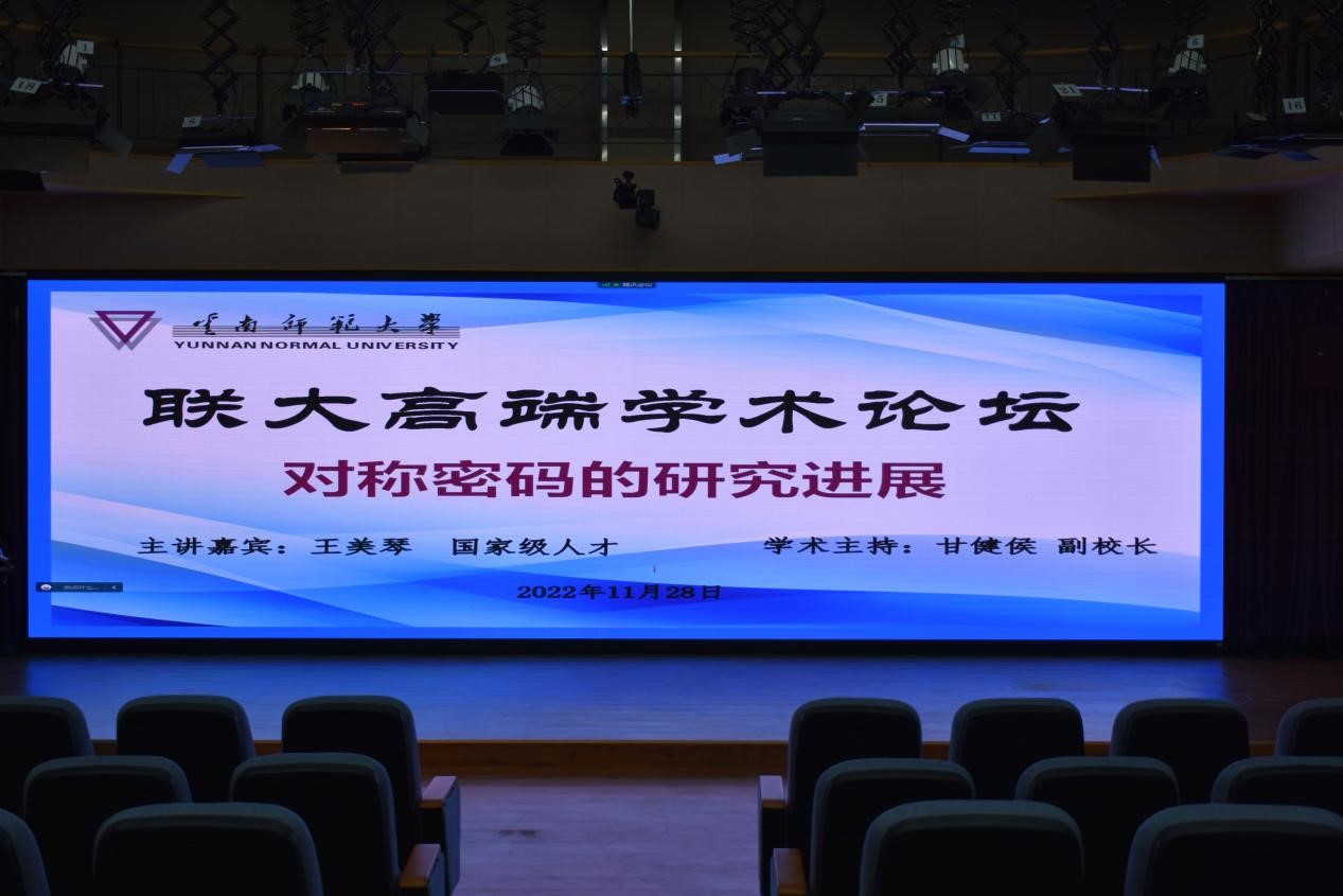 11月28日,国家级人才、山东大学网络空间安全学院常务副院长、密码技术与信息安全教育部重点实验室副主任、博士生导师王美琴教授应邀出席我校“联大高端学术论坛”。王美琴教授以线上方式在睿智4栋412报告厅为师生作了主题为“对称密码的研究进展”的学术报告。信息学院院长梁立、科研骨干教师及研究生等聆听了本次报告。