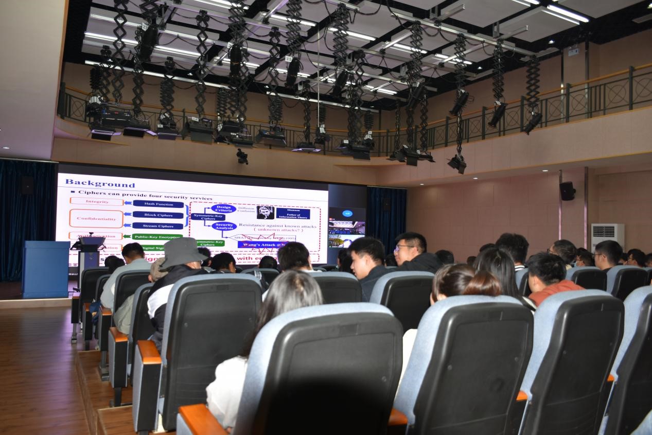在报告中,王美琴教授首先介绍了在5G、大数据等应用环境不断发展的背景下,对称密码算法面临的严峻考验和全新挑战,随后从对称密码分析和对称密码设计两个方面深入浅出地阐述了新一代网络环境下密码研究的进展。