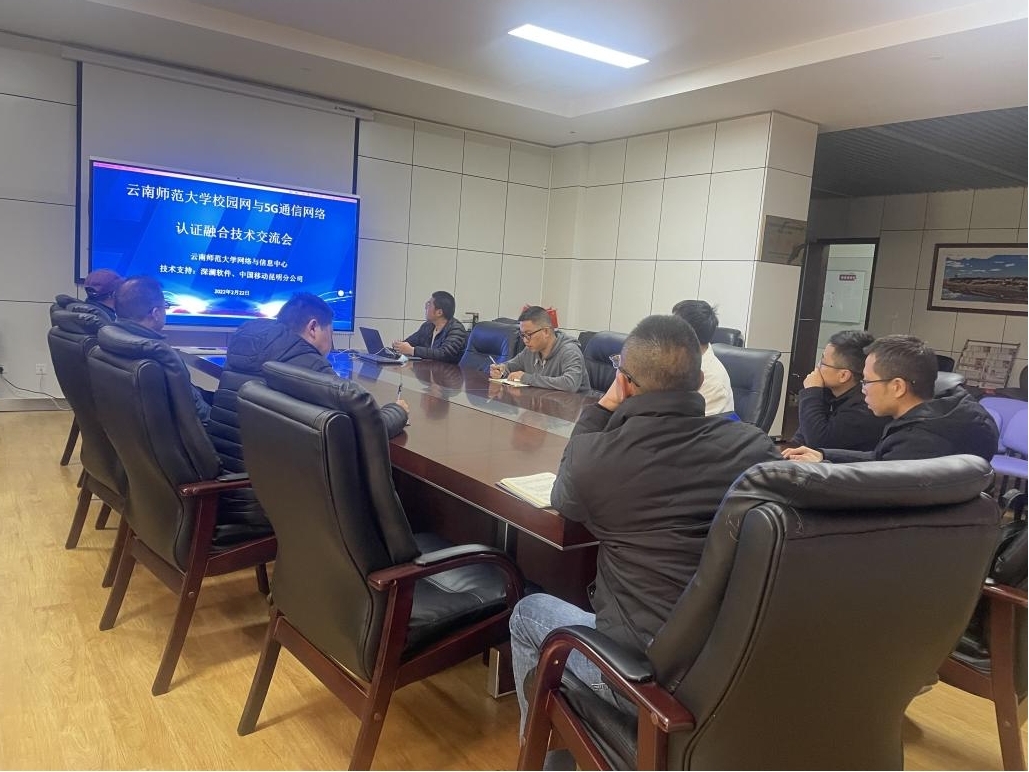 为深入学习贯彻党的二十大精神,落实学校第十三次党代会要求,积极融入省委提出的“3815”战略发展目标,进一步完善学校信息化顶层设计,提升学校信息化建设水平,2月22日下午,网络与信息中心组织召开“云南师范大学5G融合双域专网”工作推进会,学校相关技术人员以及网络与信息中心工作人员参加会议,会议邀请了中国移动昆明分公司、深澜软件公司做专题交流。