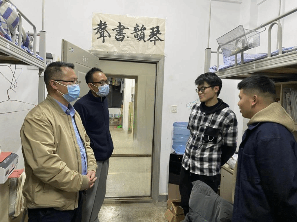 杨栋会一行先后到西区10栋男生公寓和西区7栋女生公寓走访,与学生们亲切交谈,认真倾听同学们心声。在深入了解同学们的思想动态、心理状况、学习生活情况后,杨栋会嘱咐同学们要提高防范意识,做好健康检测,做好季节性传染病的防控,尽量减少聚集性活动。鼓励同学们珍惜在校学习时光,夯实专业基础,提高理论水平,做好未来职业规划,立大志、明大德、成大才、担大任。