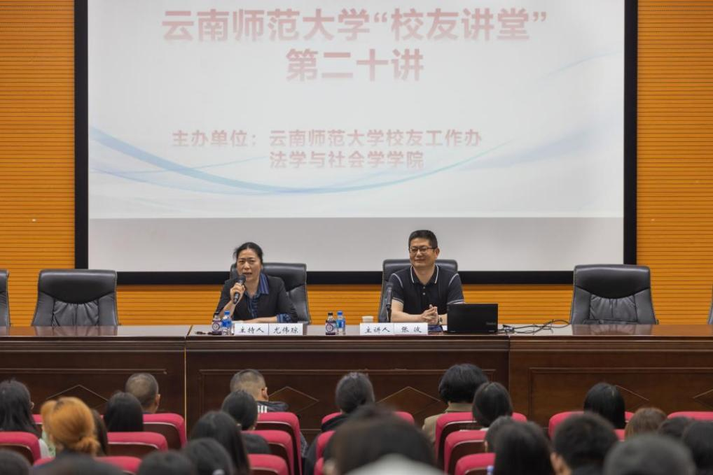 3月28日下午,我校1999届校友,中共梁河县委常委、县纪委书记、县监委主任张波做客“校友讲坛”第二十讲,为学弟学妹们带来题为《坚持创新驱动 积极谱写梁河全面从严治党新篇章》的讲座,讲坛由法学与社会学学院院长尤伟琼主持。中共梁河县委常委、副县长王平平,相关职能部门负责人及200余名同学聆听了报告。
