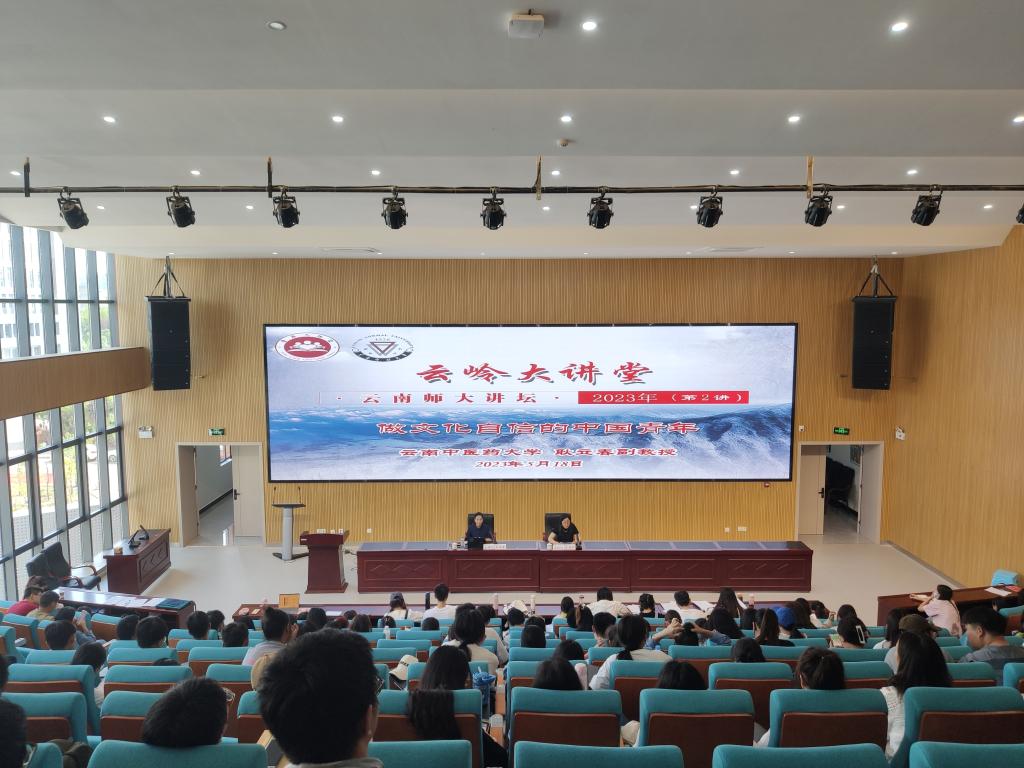 5月18日下午,2023年“云岭大讲堂·云南师大讲堂”第二讲在呈贡校区学前教育大楼301报告厅开讲。云南中医药大学副教授、云南省云岭先锋讲师、团省委青年讲师团讲师耿立春以“做文化自信的中国青年”为题作了专题报告,教育学部、文学院、历史与行政学院220余名师生参加讲座。讲座由教育学部党委副书记朱静虹主持。