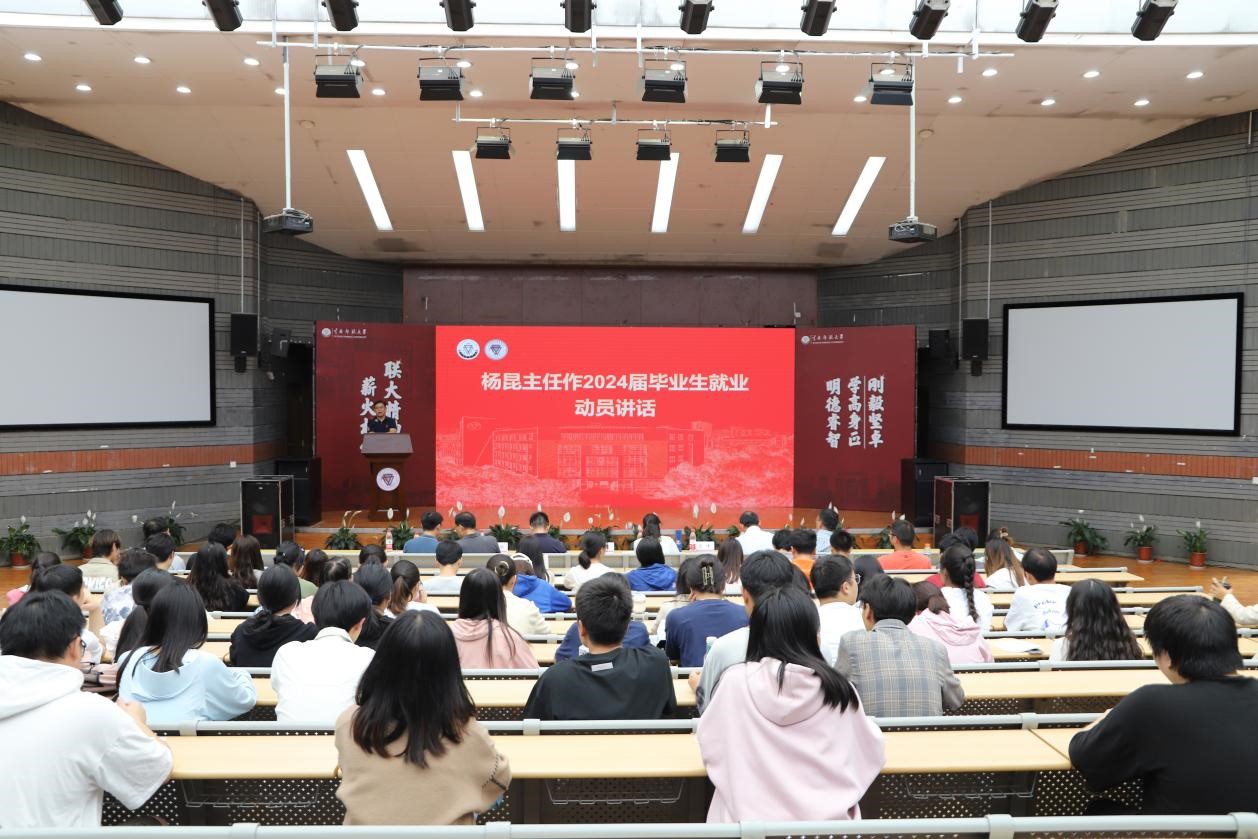 会上,学部主任杨昆作2024届毕业生考研和就业动员讲话。他代表学部向2023届毕业生中考取硕士研究生和博士研究生的同学表示祝贺,勉励2024届毕业生向师兄师姐们学习,合理设定考研目标学校,制定复习计划,积极备考,争取“一站上岸”。他向2024届毕业生分析了当前的就业形势,指出就业是最大的民生,同学们要转变就业观念,及时调整就业意向,积极主动地找寻机会,本着提升自我,积累经验的目的,培养向下扎根的勇气和决心,到基层磨练自我,增长本领,将个人的理想同国家的发展紧密结合起来,用奋斗去诠释青春的意义。