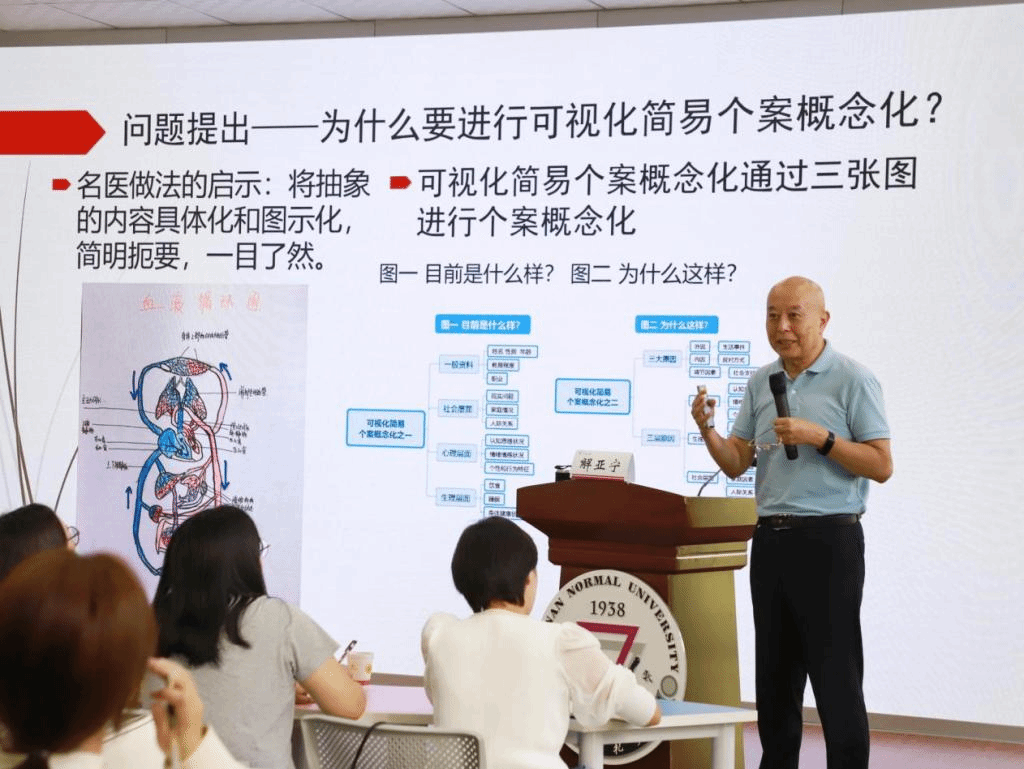 “个案概念化”是咨询师的核心胜任力。解亚宁教授从什么是个案概念化入手,层层递进、深入浅出地展示了个案概念化的基础以及如何实施,最后突出个案概念化基础下的整合心理咨询方法的运用。结合典型案例,详细教授心理咨询师如何整合各方信息,发现核心问题,反复体会个案概念化的形成过程,从而提出干预的假设和进一步的干预计划。由点及面、理论结合实践,解亚宁教授的专业讲授赢得在场师生的阵阵掌声。此次培训有助于专兼职心理咨询师做到准确共情、选择正确的切入点、确定适当的干预方向、把握适当的咨询进程,不断提高其咨询效能,增加成长机会。