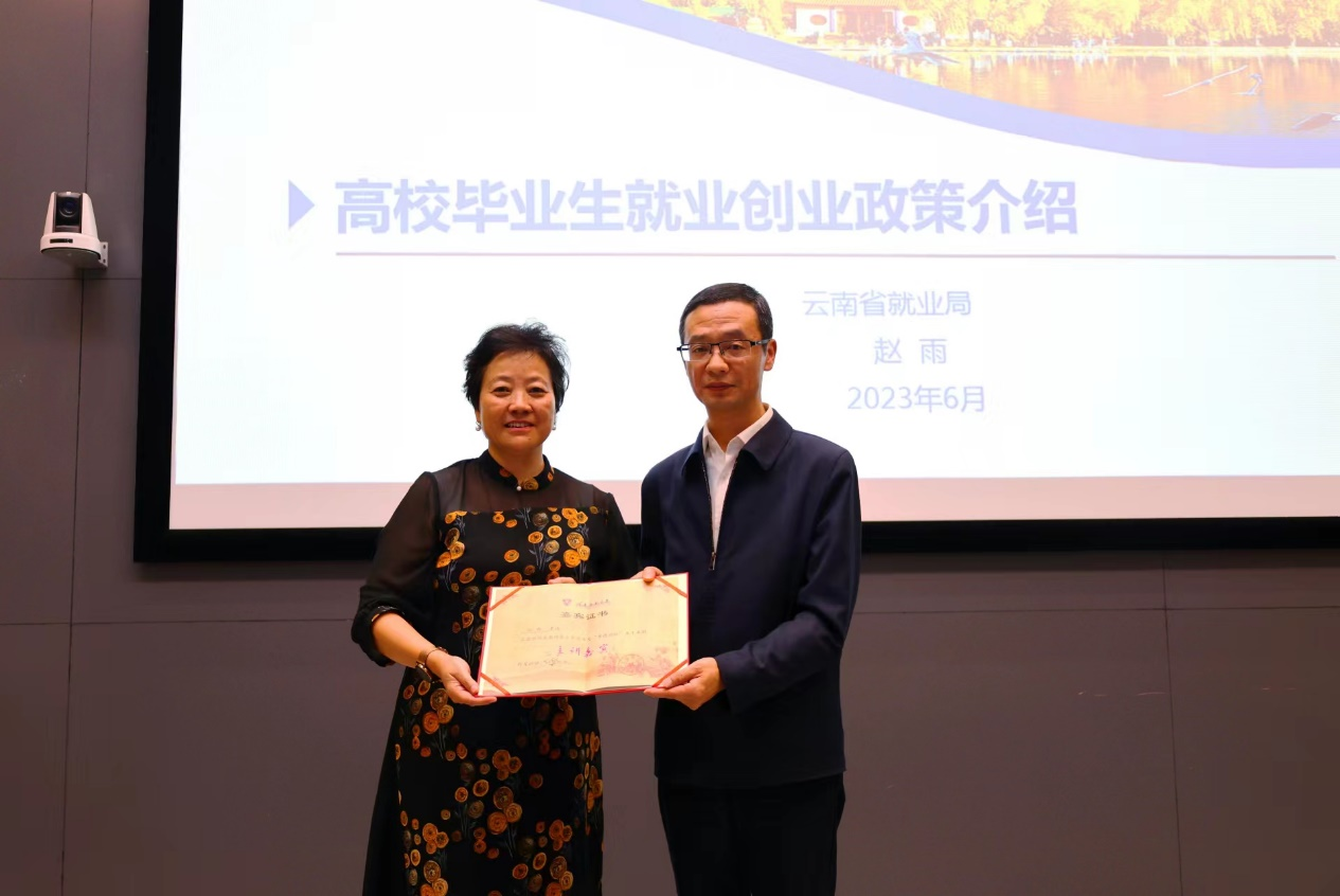 6月15日晚,第五十五期求道论坛在我校教师教育国家级实践教学基地示范中心214报告厅开展。本次讲坛邀请到云南省就业局副局长赵雨担任主讲嘉宾,就“高校毕业生就业创业政策”这一主题进行了交流。本次论坛由就业处处长李红主持并向赵雨颁发了嘉宾证书。