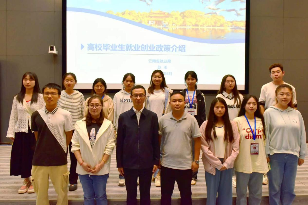 讲座伊始,赵雨分析了如今高校毕业生就业总体趋势,指出云南省当下就业、创业面临的机遇和挑战。接下来,赵雨从“鼓励到基层就业”、“鼓励企业吸纳”、“支持自主创业”、“提升就业技能”、“就业援助”、“公共就业服务”六个方面给同学们讲解了云南省高校毕业生就业创业扶持政策体系;“三扩大、一前推、一助力、一结合、一支撑”五个方面介绍了最新就业创业政策。最后,还对大学生就业给予了“转变就业观念、找到自身定位”等建议。
