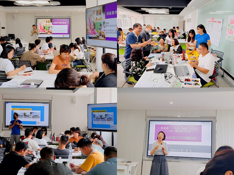 由我校继续教育学院肖飞、果红、李芸芸;盘龙区教师进修学校张向红、李东霖;昆十中吴骥鹏、明通小学赵以云等教师组成的培训团队承担此次培训任务。为期2 天的培训,以“创新人才培养课程的设计与组织”为主题,培训内容包括创新人才培养与跨学科教学的意义,基于乐高教育课程方案的创新教育理念、课程评价、教学规划和实施策略与方法,结合学校实际的跨学科课程统整规划等。培训旨在帮助教师提高创新人才培养的课程设计能力,掌握跨学科教学组织的方法,学校课程整合的模式与策略,提升创新教育素养。