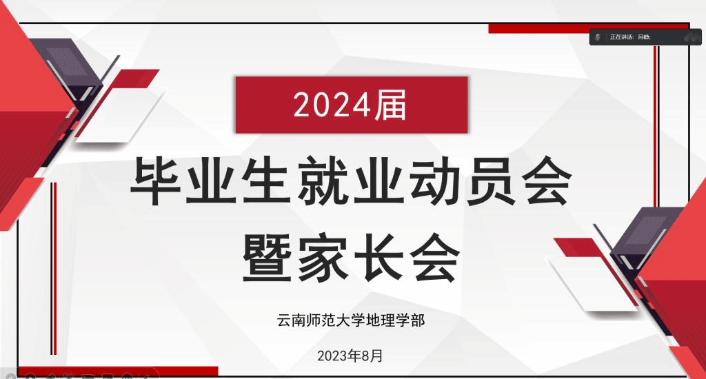 为了帮助2024届毕业生及家长全面了解就业形势,形成家校促就业的合力,帮助毕业生更加充分更高质量就业,2023年8月17-19日,地理学部通过云端连线的方式分专业召开了2024届毕业生家长会。会议由学部党委副书记吕峥主持,毕业班班主任、就业辅导员、全体毕业生及家长参加。