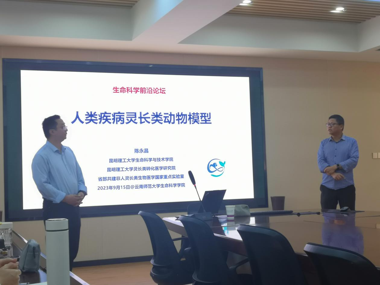 9月15日,生命科学学院在睿智楼报告厅举行西南联合大学在昆建校暨云南师范大学建校85周年学术报告会,昆明理工大学生命科学与技术学院院长、国家杰出青年科学基金项目获得者陈永昌教授受邀作了题为“人类疾病灵长类动物模型”的学术讲座。讲座由学院副院长赵三军教授主持,马铃薯科学研究院院长尚轶教授、学院的师生以及校内外的相关研究者等50余人聆听了本次讲座。