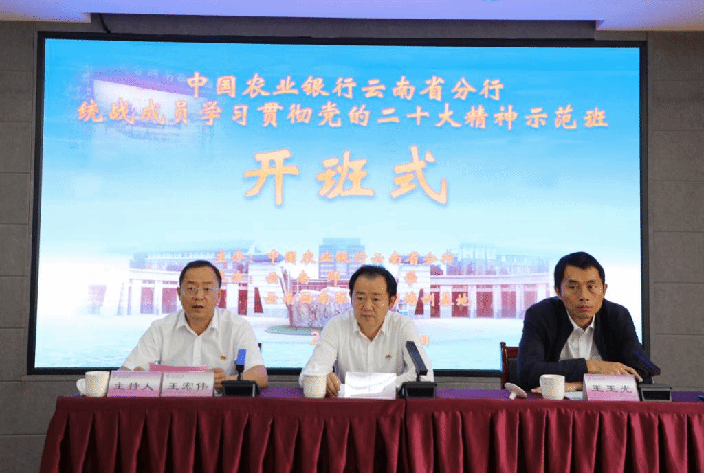9月25日上午,我校承办的中国农业银行云南省分行统战成员学习贯彻党的二十大精神示范班举行开班仪式。中国农业银行云南省分行人力资源部副总经理杜波出席开班仪式并作动员讲话,云南师范大学西南联大校区管委会副主任王玉光致辞。中国农业银行云南省分行统战成员共39人参加开班仪式,仪式由云南西南联大干部培训基地执行副主任王宏伟主持。