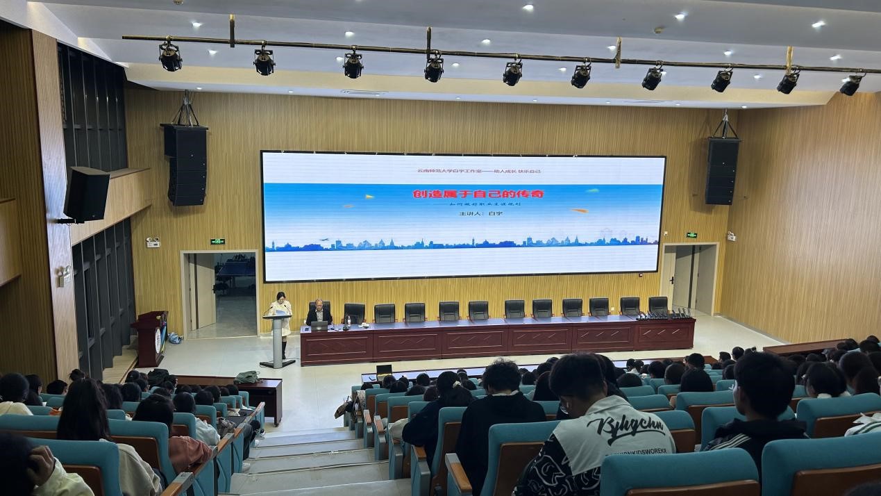 10月13日,教育学部在学校学前大楼报告厅举办“创造属于自己的传奇”为主题的职业生涯规划讲座。讲座由学校创新创业学院办公室副主任白宇主讲,教育学部党委副书记朱静虹主持,学部2023级200余名本科新生参加。