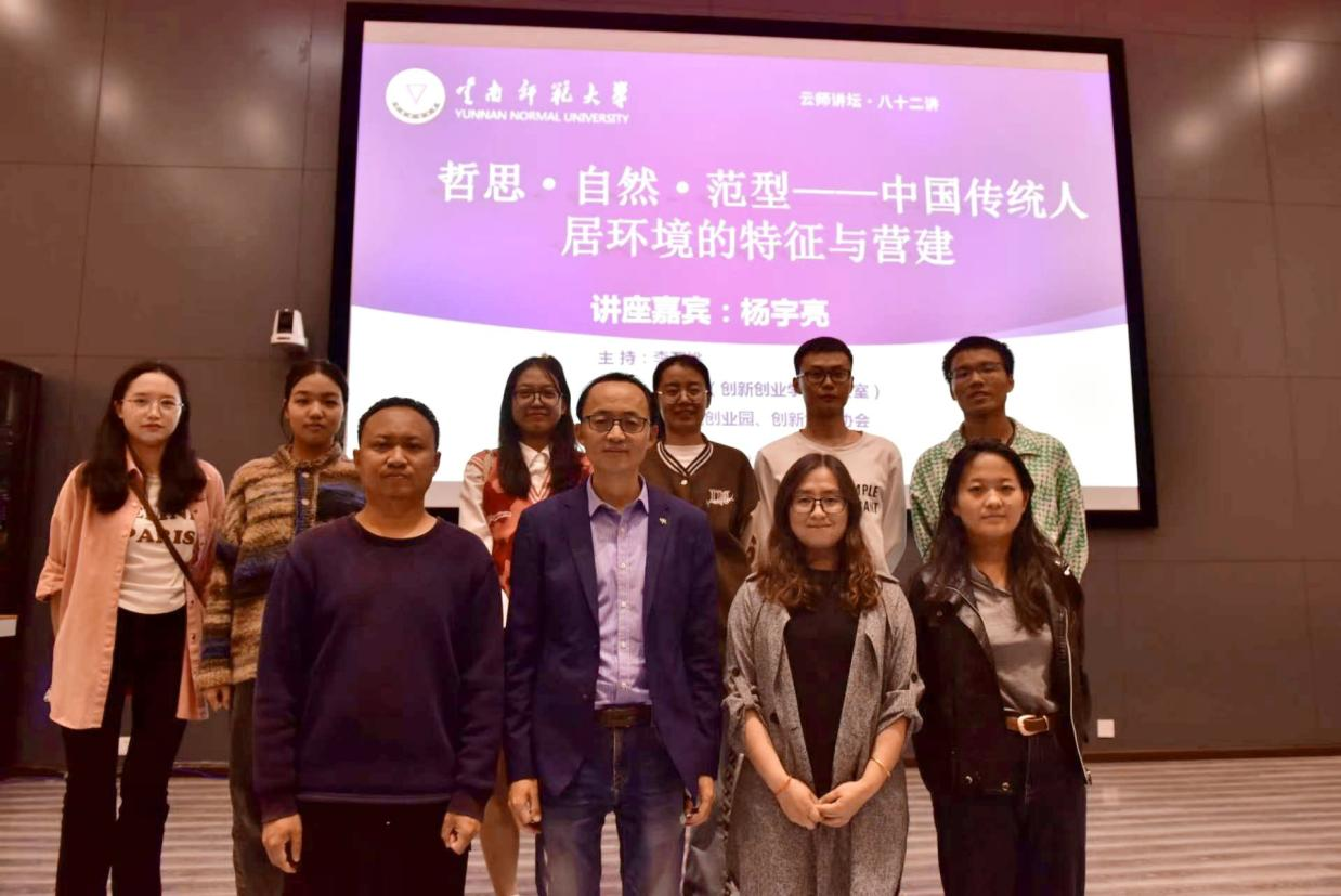 10月27日晚,第八十二期云师讲坛在我校教师教育国家级实验教学示范中心214报告厅开展。本次讲坛邀请到我校地理学部,清华大学城乡规划学博士、人文地理与城乡规划专业负责人杨宇亮担任主讲嘉宾,就“哲思·自然·范型—中国传统人居环境的特征与营建”这一主题进行了分享与交流。本次讲坛由就业处创业实践科副科长李亚桃主持并颁发嘉宾证书。