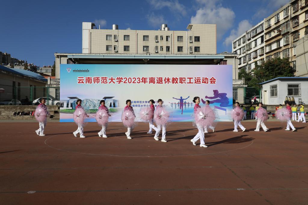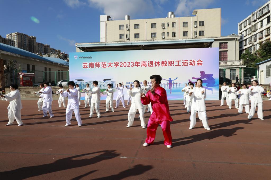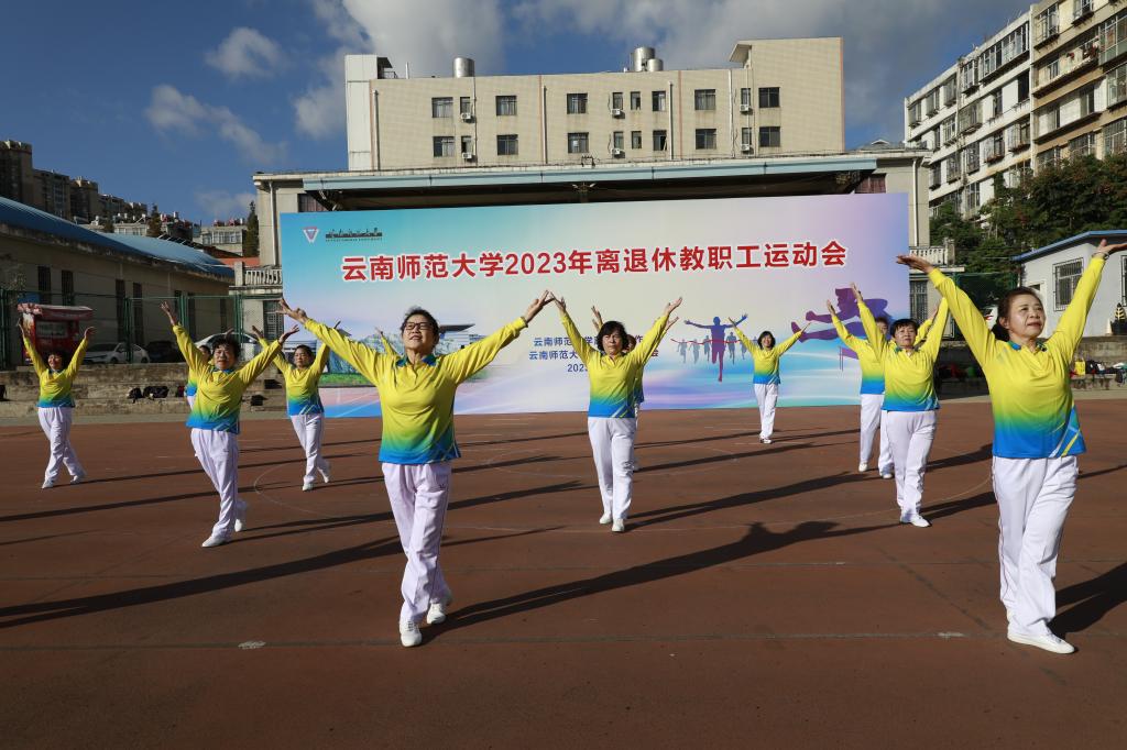 11月9日上午,离退休工作处与云南师范大学老年人体育协会联合举办的2023年离退休教职工运动会在一二一西南联大校区田径场开幕。