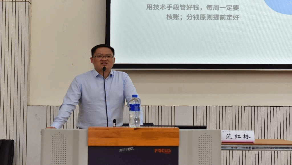 讲座伊始,范红林结合社会的变化讲述当下创业的不同及创业中可能遇到的问题,接下来,他结合自身创业经历从“我为什么要选择创业? ”“创业成功需要几年? ”“创业失败会怎样? ”几个问题入手,通过对国家政策和时代需求的分析,进一步阐述了大学生创业的可能性、创业的风险、创业的误区和创业的目的,给同学们带来不一样的感受和启发。接下来,范红林提及了自己在学校学习生活的经历,强调在校期间无意间积累的资源对自己创业提供的帮助,鼓励同学们在校期间多参加社会活动,积累人脉资源。