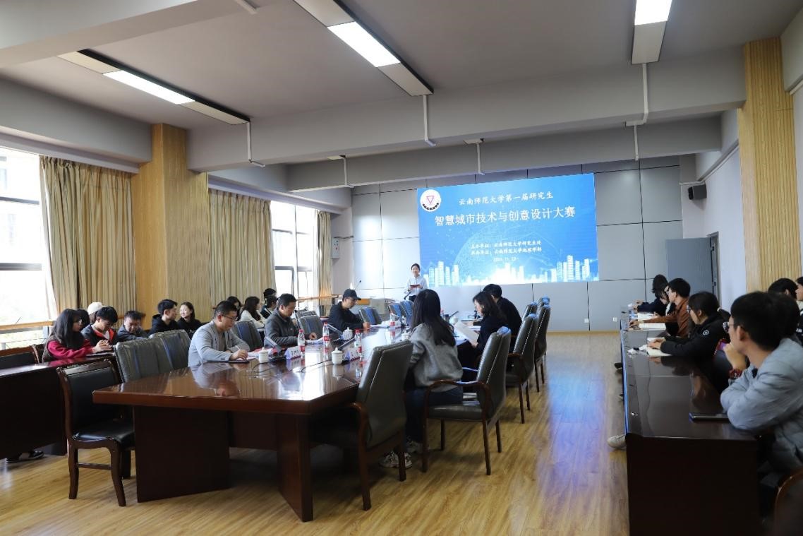 11月23日,我校第一届研究生智慧城市技术与创意设计大赛在地理学部成功举办。本次大赛邀请到学校研究生处副处长范荣康、就业处副处长李映松、地理学部党委副书记吕峥、信息学院王敏、地理学部李庆雷、网络与信息中心杨德强等评委嘉宾,各学院参赛选手、观摩师生等100余人参加。