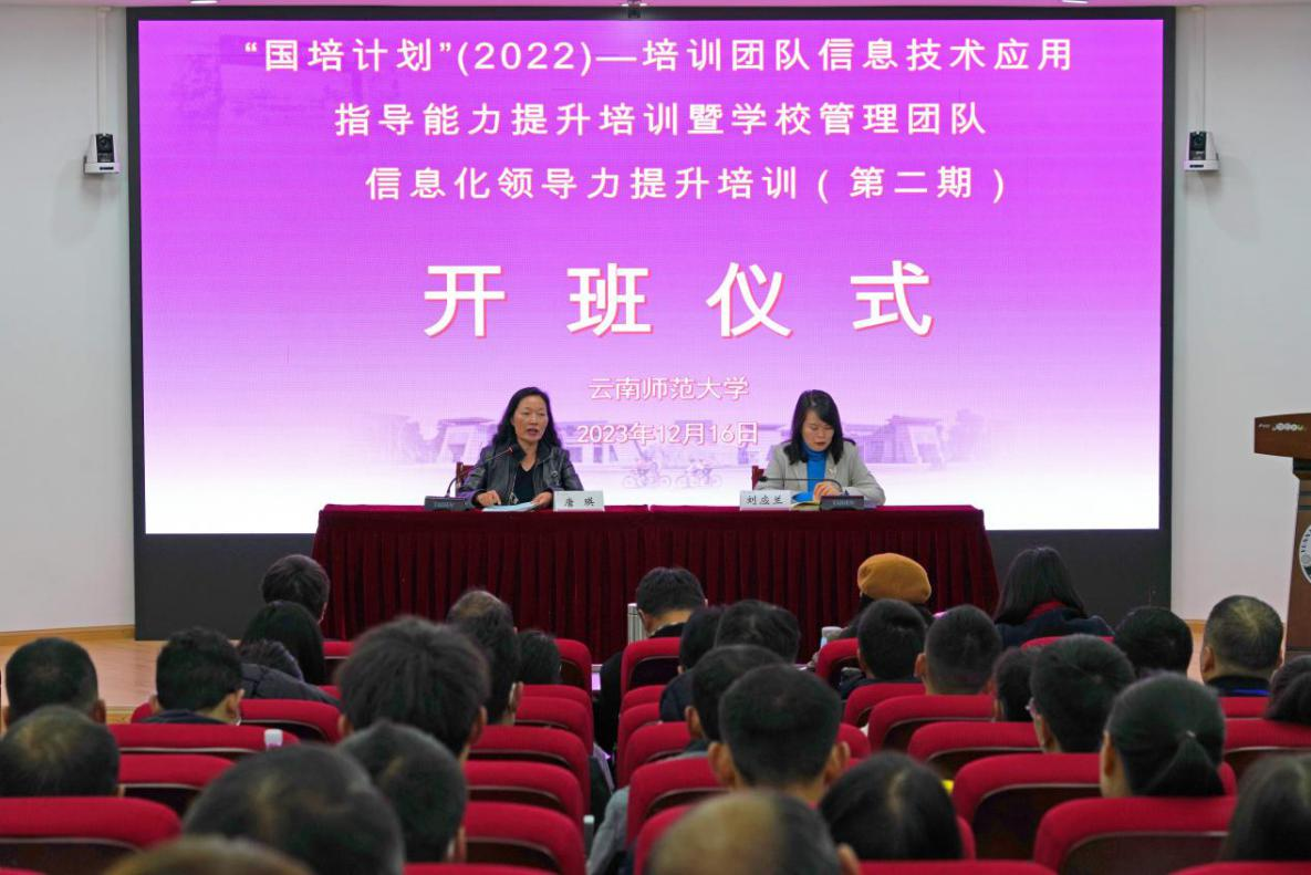 唐瑛在致辞中介绍了云南师范大学的发展历程及开展教师培养培训工作的有关情况,并对本次培训的目标、课程设置、培训管理和服务保障等作了说明和要求。她强调教育信息化对当今教育的重要性,以及此次培训对提升管理者、培训者素质和能力的重要意义,希望全体学员珍惜培训机会,严守培训纪律。