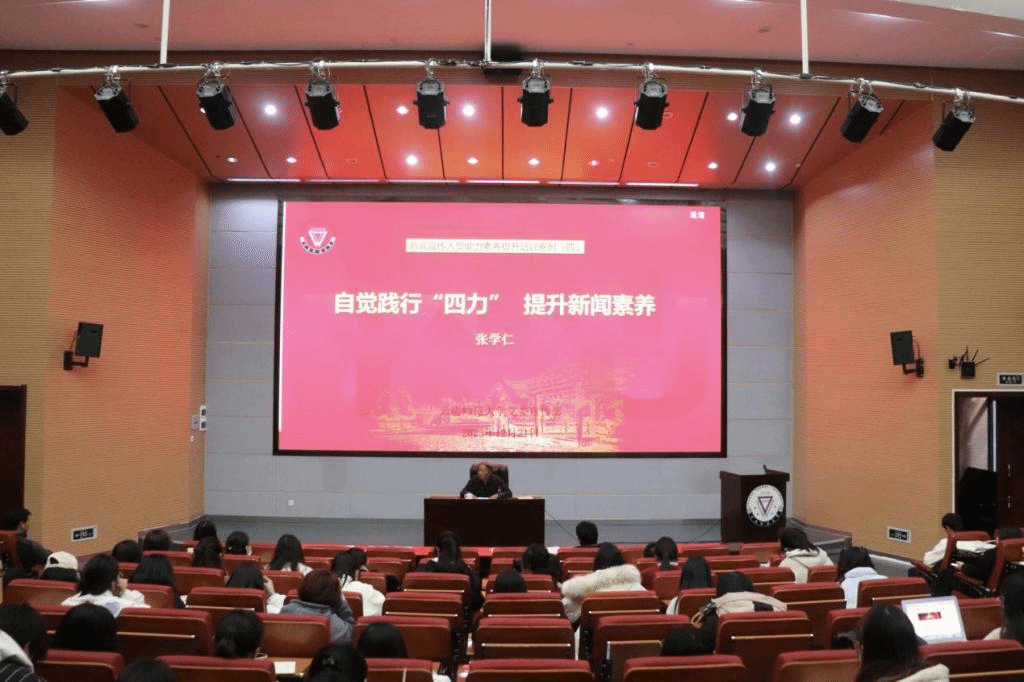 12月21日下午,由校党委宣传部举办的“新闻宣传人员素养及能力提升系列讲座”第四讲“自觉践行‘四力’ 提升新闻素养”在呈贡校区西边中心报告厅举行。