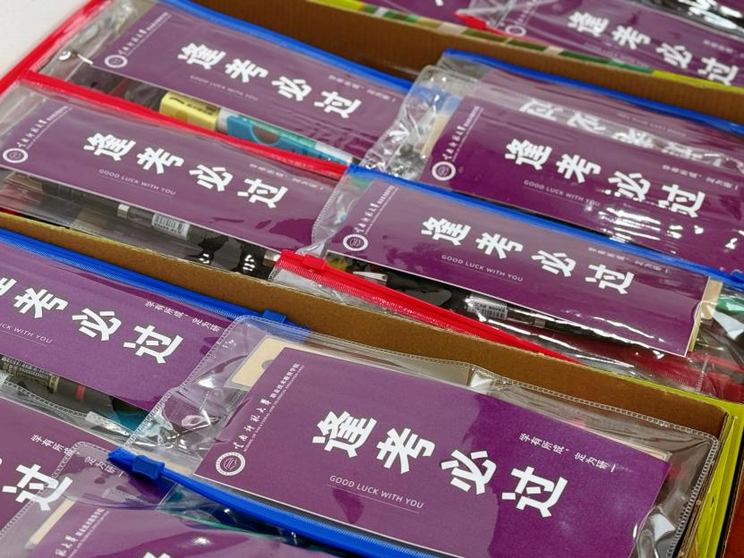 为了表达对考研学子的关爱与支持,学院领导和老师们亲自为每一位考研学子发放精心准备的助考工具包,为同学们的考研之路增添一份温暖和力量。
