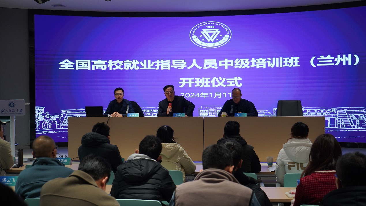 开班仪式上,郭建东从西北师范大学基本情况以及学校就业创业现状进行了介绍,并对学员提出了两点要求:一是要认真听讲,积极思考;二是把学到的新知识应用到今后的就业指导与服务工作中,相互促进,提高就业指导的专业能力。