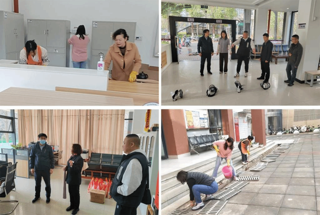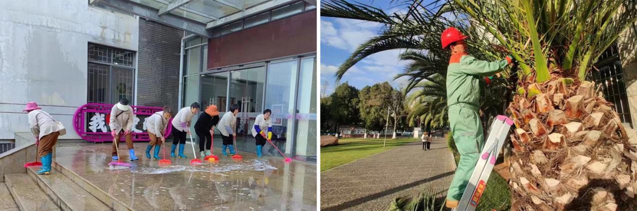 四是全面开展校园环境深度清洁。协同物业服务企业和绿化养护企业全面完成两校区校园道路和绿化带清洁,校园洗手设施巡检和清洁,宣传栏和公交车站清洗,各楼宇立面玻璃和台阶清洗,公共教室深度清洁和消毒,教室课桌椅检查维护,教室照明的检查和维护等工作。常态化开展校园绿植修剪、除草、病虫害防治等绿化养护工作。