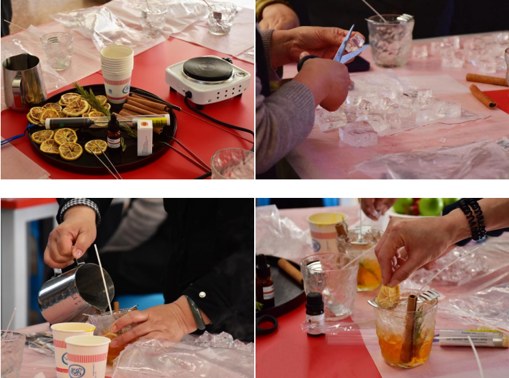 融化蜡胚、调制颜色、精心装饰、降温凝固……从边听边看到巧手制作,老师们仔细聆听制作步骤和注意事项,充分发挥自己的创造力和想象力,将融化好的蜡液倒入精美的容器中,经过充分搅拌,一个个清新怡人的作品呈现在眼前,阵阵沁人心脾的香气萦绕现场。