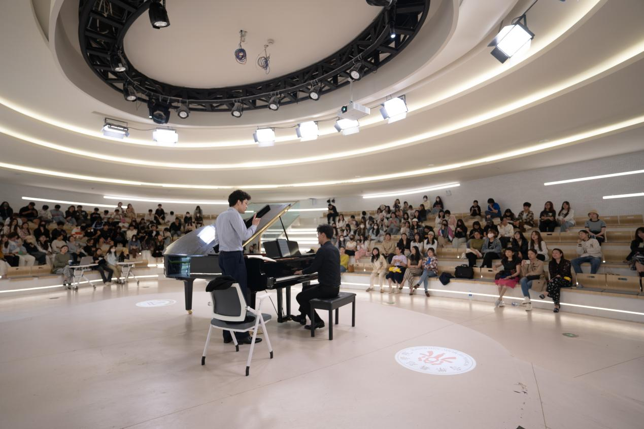 4月11日上午,郭鑫冉在音乐舞蹈学院开展公开课,为6名同学一对一讲授钢琴演奏技术。他用生动幽默的语言,剖析了钢琴的演奏技巧,并鼓励学生们要勇于尝试和探索,不断提升自己的音乐素养和演奏水平。