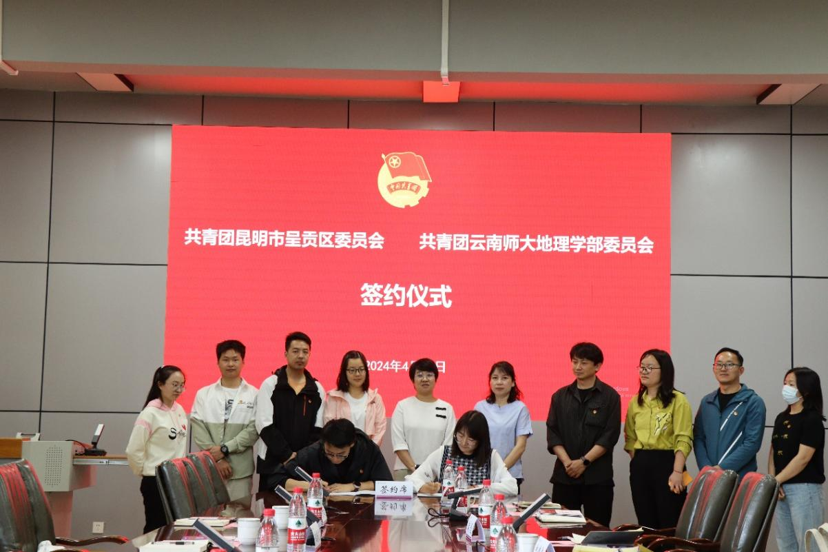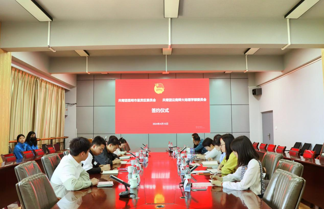 4月15日,地理学部团委与呈贡团区委校地共建座谈会暨签约仪式在睿智楼会议室举行。呈贡团区委书记丁楷伦、校团委书记郑伟俊、副书记赵彪、地理学部党委副书记吕峥以及双方相关人员参加本次活动。活动由地理学部党委书记周妍主持。