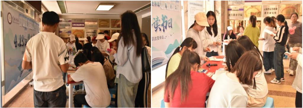 为加强阅读引领,教育引导学生“读书好,读好书,好读书”,4月25日,职业技术教育学院易班工作站在一二·一西南联大校区明晰楼一楼大厅开展“书香浸润,不负春光”游园活动。