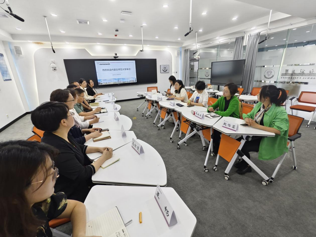 内蒙古师范大学教育学院教育系系主任阿木古楞、学前教育系系主任周娟介绍了所在学院教育学、学前教育两个专业建设和人才培养情况。双方围绕专业建设和人才培养展开了深入探讨。会后,内蒙古师范大学教育学院调研组一行参观了学前大楼和校史馆。