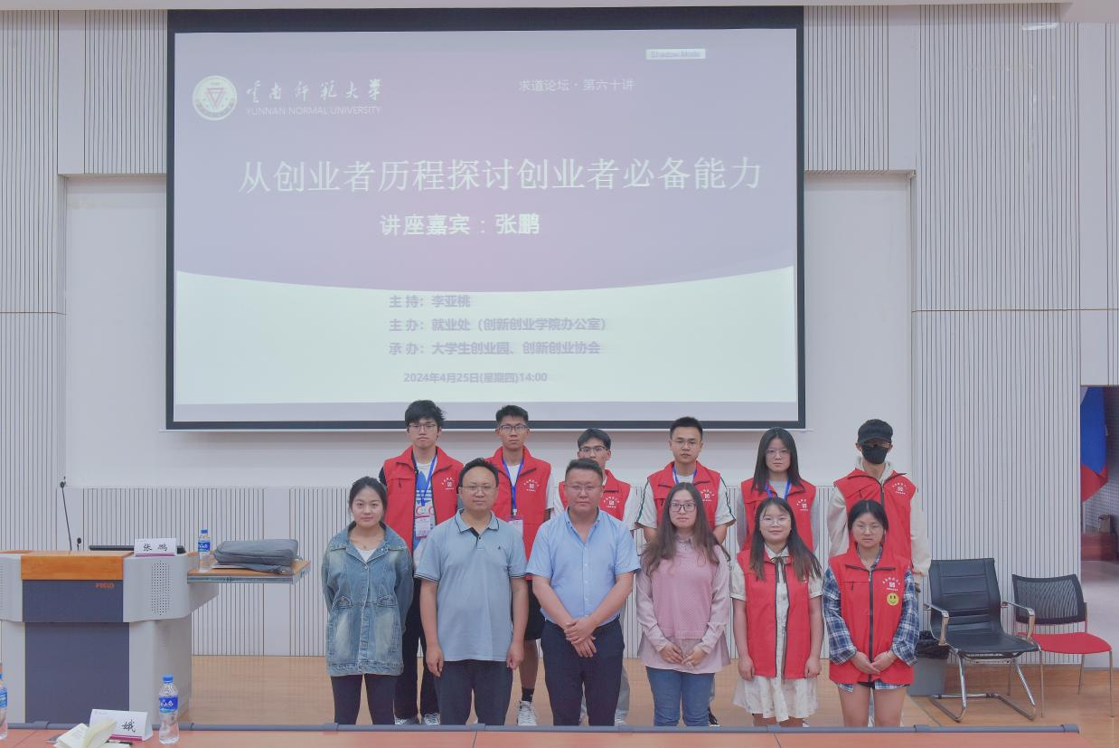 4月25日下午,第六十期求道论坛在我校同析楼2幢开讲。本次论坛邀请云南省就业促进会副会长、云南中志教育集团联合创始人、昆明趣学教育培训学校校长张鹏担任主讲嘉宾,张鹏以“从创业者历程探讨创业者必备能力”为题和同学们进行分享与交流。