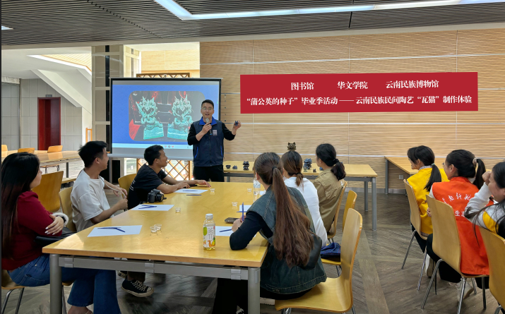 5月30日下午,“蒲公英的种子”毕业季活动——云南民族民间陶艺“瓦猫”制作体验在图书馆举行,活动由图书馆、华文学院、云南民族博物馆、图书馆学生馆员协会联合举办。