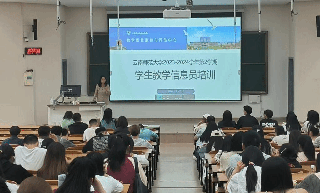 为加强学校教学管理,完善教学质量监控体系,促进教学信息反馈工作制度化、规范化、科学化,6月6日下午,教学质量监控与评估中心在汇学楼举办2023-2024学年第二学期学生教学信息员培训会。学院(部)教学秘书、教学质量监控与评估中心工作人员和学生教学信息员骨干180余人参加培训。
