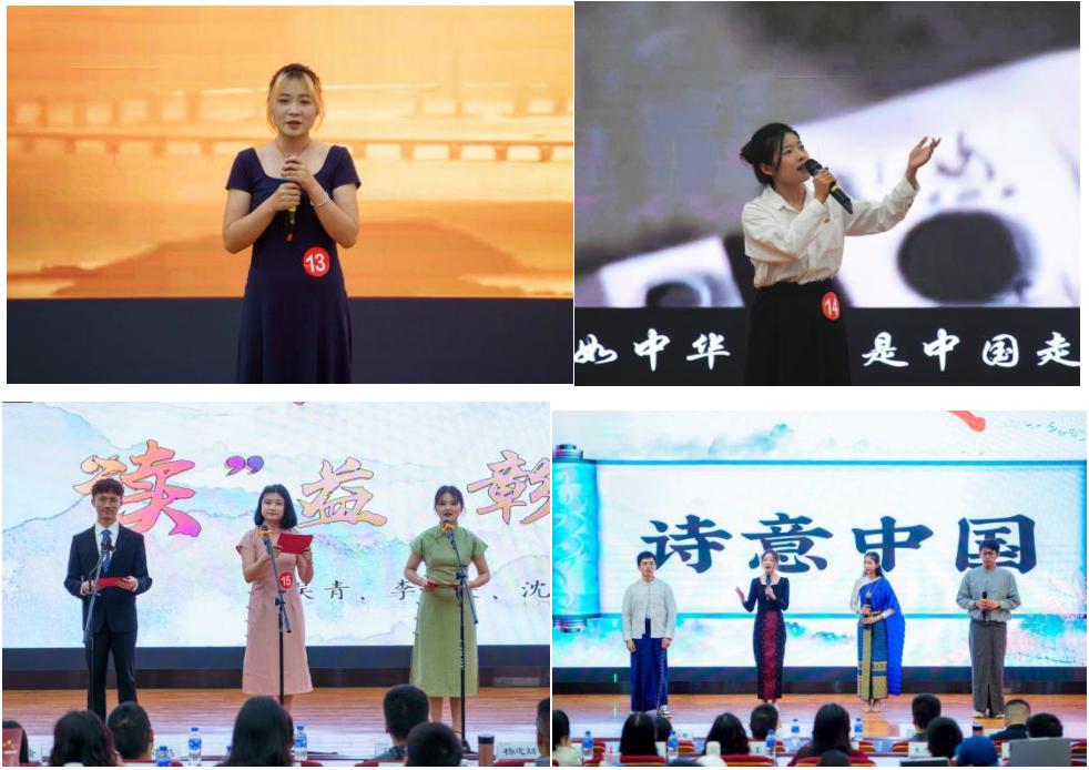 舞台上,16组选手用他们真挚的情感,动人的声音,为现场观众呈现一场视听享受。留学生表演嘉宾也带来精彩的“诗意中国”诵读。