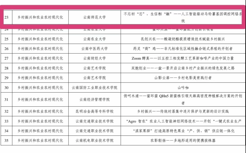 6月22日,第十一届“挑战杯”云南省大学生创业计划竞赛决赛在云南交通职业技术学院呈贡校区举行。我校生命科学学院师生组成的两支队伍,在此次决赛当中荣获“一金一银”的优异成绩。其中《不忘初“芯”,生信相“融”——人工智能驱动马铃薯基因调控网络系统》项目荣获金奖,《“有紫有味”薯片——“师大6号”紫色马铃薯片特色产品开发》项目荣获银奖。