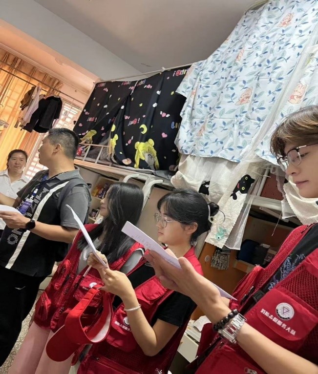 安全大排查过程中,消防志愿者深入每一栋学生宿舍,全面检查了消防设备的配备与运行、电器的规范使用、是否存放易燃易爆和危险物品情况,查看了电线电路和学生日常用电习惯的安全可靠性。针对发现宿舍存在的安全隐患,耐心地向同学们讲解了用电的安全常识,分享了消防安全知识,交流了火场逃生技巧,纠正了错误的生活习惯,强调了提升自身的安全防范和自救互救能力的重要性,宣传了“安全第一,预防为主”的理念,激发了更多学生关心关注消防、共同守护校园安全的热情,促使校园每一处安全隐患都能及时被发现,被正确处置,让安全管理无死角。