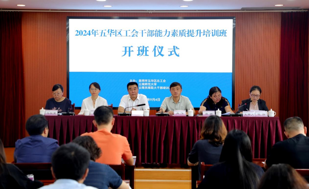 9月4日上午,由昆明市五华区总工会主办,云南师范大学、云南西南联大干部培训基地承办的2024年五华区工会干部能力素质提升培训班在一二一校区举行开班仪式。五华区人大常委会副主任、区总工会党组书记、主席和旭,云南西南联大干部培训基地执行主任肖飞,以及来自五华区各级工会的48名工会主席参加了开班仪式。