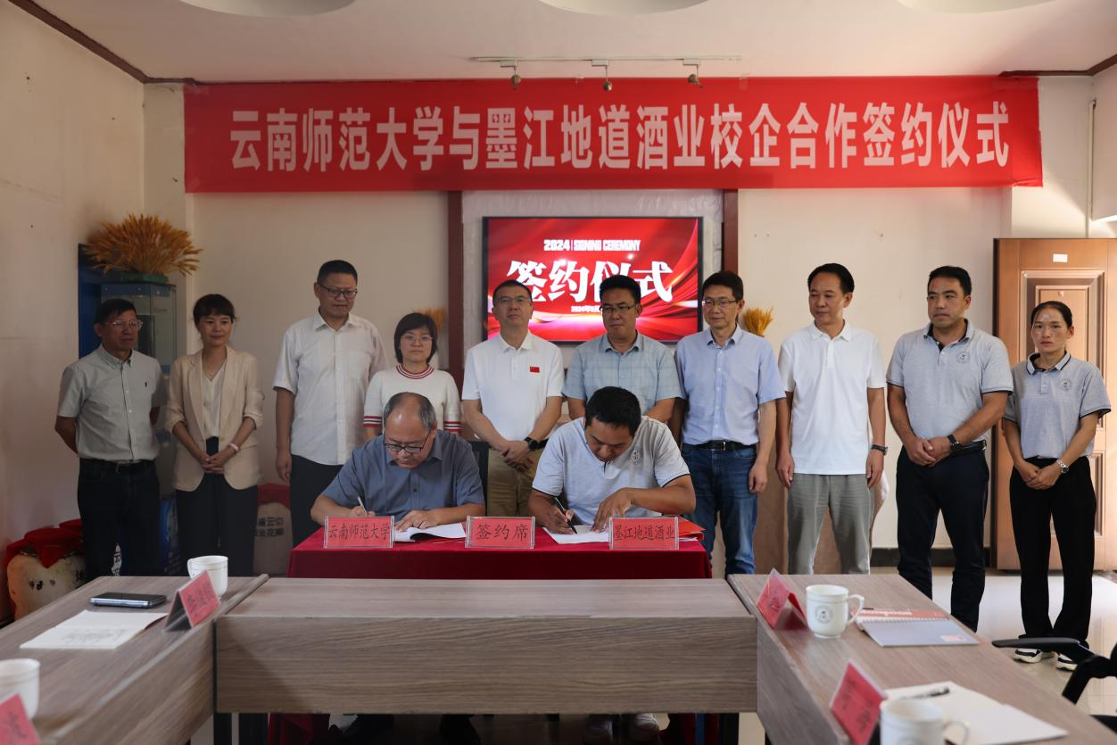 9月6日,我校生命科学学院与墨江地道酒业有限公司举行校企合作签约仪式。校党委委员、副校长牛治亮,墨江县委副书记、县长李进学、生命科学学院院长赵三军、科学技术处副处长冯小波、墨江地道酒业有限公司董事长俞为民出席签约仪式。
