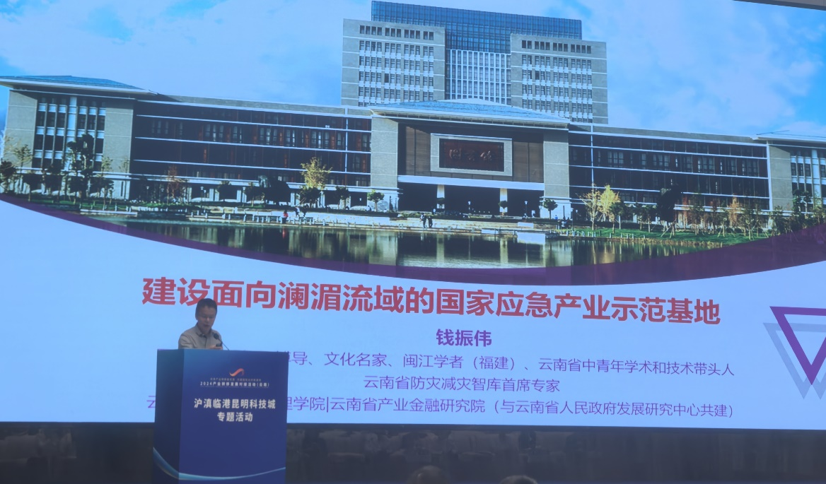 管理学院二级教授、博士生导师、云南省中青年学术和技术带头人、云南省防灾减灾智库首席专家钱振伟教授作了《建设面向澜湄流域的国家应急产业示范基地》的报告,他详细解剖中国应急产业发展现状,指出云南应急产发展的模式、路径和发展定位,即“主动融入和服务国家战略,充分利用沪滇合作机制,承接长三角应急产业转移,做好应急关键产业备份,建立立足云南、面向全国、辐射澜湄流域的国家安全应急产业示范基地。