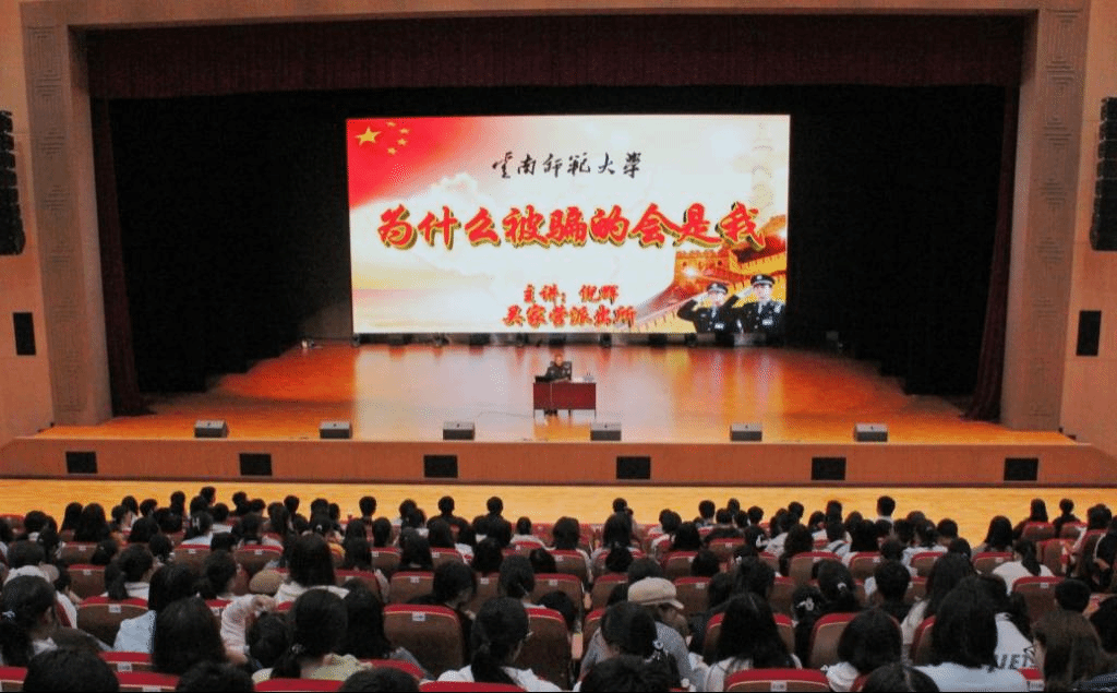 10月11日教育学部在东区多功能报告厅开展预防电信诈骗讲座呈贡分局吴家营派出所社区民警倪辉受邀作为主讲嘉宾。教育学部2024级全体本硕新生,高年级宿舍长共计800余人参加讲座由学部党委副书记朱静虹主持。