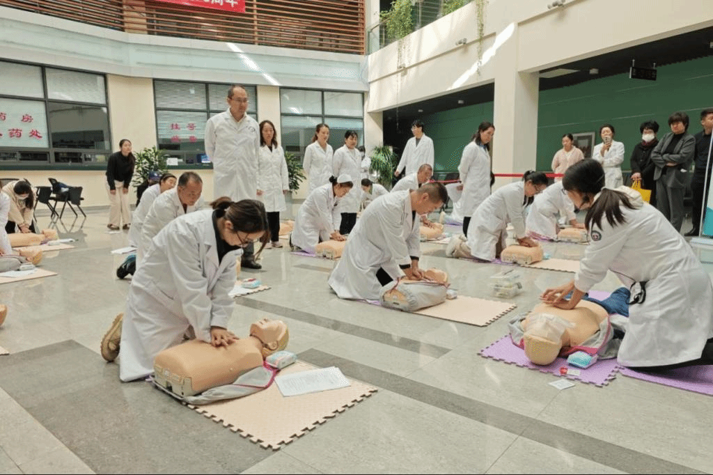 培训中,昆明医科大学第一附属医院急诊科医生张杰和刘晓雪围绕心肺复苏的概念、操作要点、心脏骤停的临床表现与诊断、心肺复苏的急救步骤以及电除颤的操作流程等方面,进行了全面而专业的知识讲解和示范。