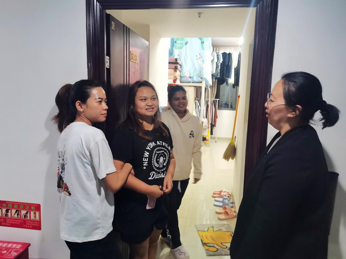 为了解新学期来华留学生学习生活状态,营造整洁、安全、文明、和谐的宿舍生活环境,筑牢校园安全防线,1017,云南华文学院、国际中文教育学院党政领导班子及全体留学生班主任深入留学生公寓进行走访慰问。