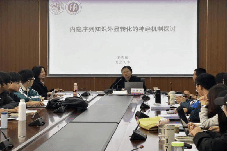 讲座上半场为“内隐序列知识外显转化的神经机制探讨”。围绕个体对序列规则会产生有意识的觉察这一现象,郭秀艳从研究背景逐步深入,引出内隐序列知识的外显转化这一过程背后的神经机制作用等核心问题,最后通过四个实验的具体设计对这些问题进行了回答,并对该主题的研究作了后续的展望。