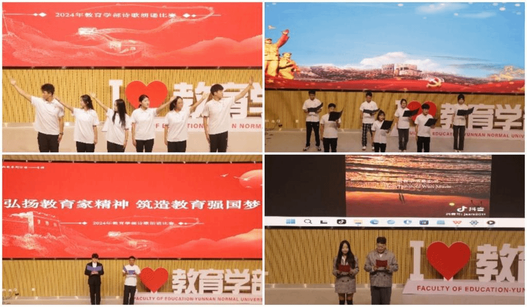 此次诗歌朗诵比赛为教育学部青春心向党系列活动——青颂,学院学子用真挚的言辞和生动的表演,歌颂教育家精神,传递教育的力量,也表达了对教育事业的热爱和对未来的美好憧憬,点亮教育的光芒。