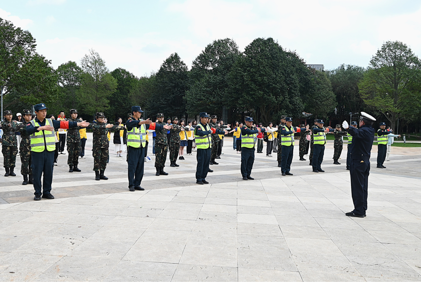 现场培训阶段,通过示范动作和组织操练的方式,让参与人员掌握了交通指挥基本技能。