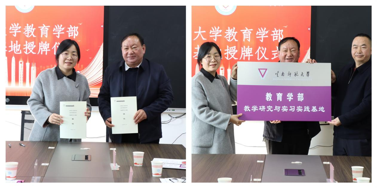 双方就教育实习基地相关事项深入沟通交流并达成一致,围绕实习教师培训、人才供需状况和教学科研合作等方面深入探讨,签署了合作协议并授牌。