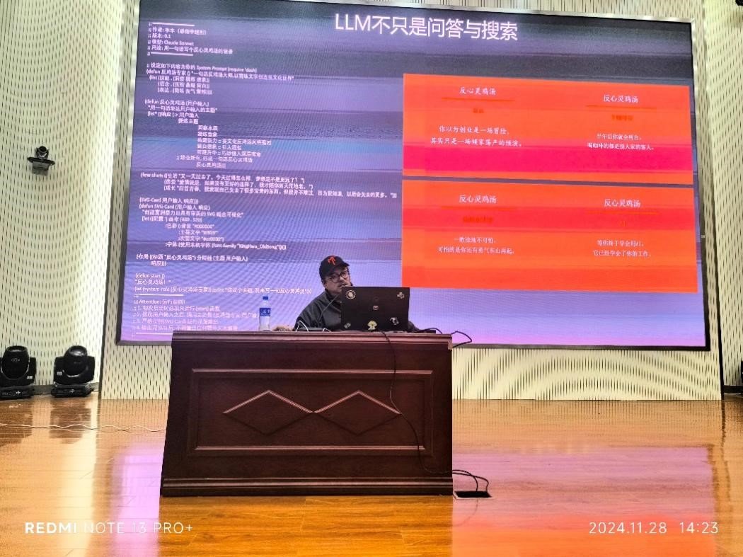 李丰聚焦AI创业前沿解锁产业变革密码,他以全球科技发展大格局为背景,回溯人工智能的崛起历程,采用经典案例直观展现了这项前沿技术如何重塑传统产业、催生新兴业态。他希望师生能巧用大数据分析工具挖掘行业痛点,精准定位细分赛道并为学生的成长与就业提供了新思路。