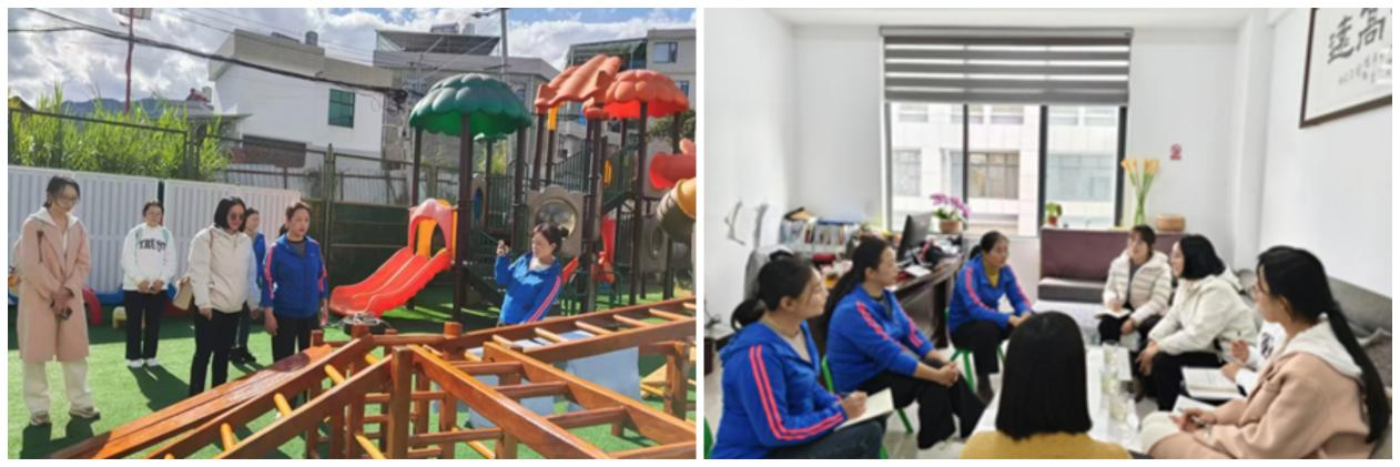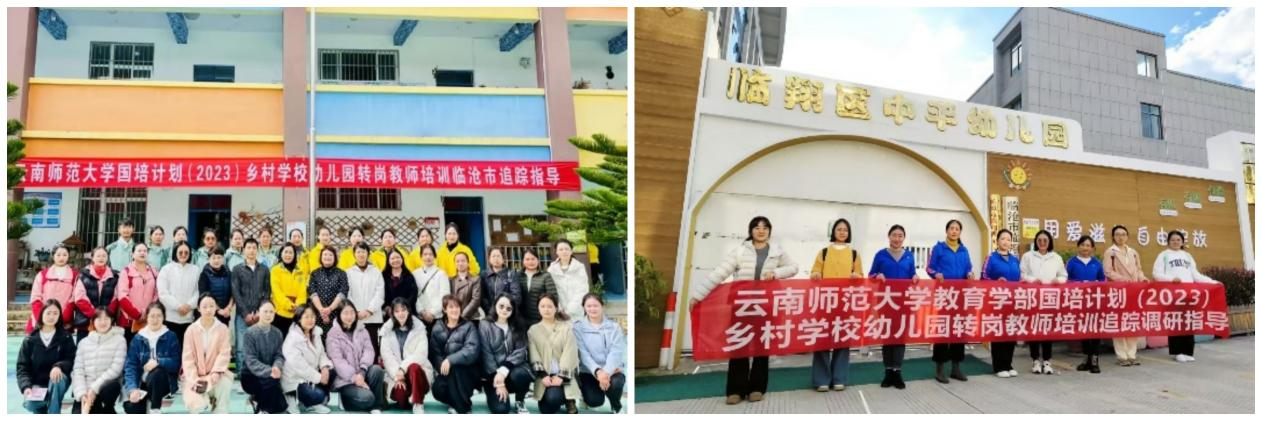 11月20日至21日,我校教育学部国培计划工作小组到临沧市临翔区开展国培计划(2023)乡村学校幼儿园转岗教师培训追踪调研指导。教育学部曹鑫莉、殷思华、高怡楠老师带队,昆明市人民政府机关第三幼儿园张鸿老师,昆明市江滨幼儿园许蕊、赵菊仙老师应邀为授课老师。团队分别走访了中平幼儿园和博尚镇中心幼儿园。