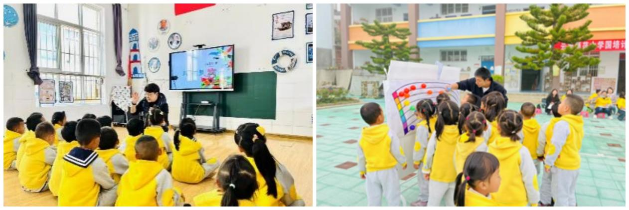 随后,张鸿、许蕊、赵菊仙示范优课教学活动,分别为中班体育活动《七色彩虹》、中班歌唱活动《彩云之南碰一碰》、大班语言活动《彩云之南趣事多》、大班美术活动《玛修的梦》。孩子们热情活泼,带着浓厚的兴趣积极参与。现场教学指导为各位教师优化教学方法、丰富教学活动形式提供借鉴参考。