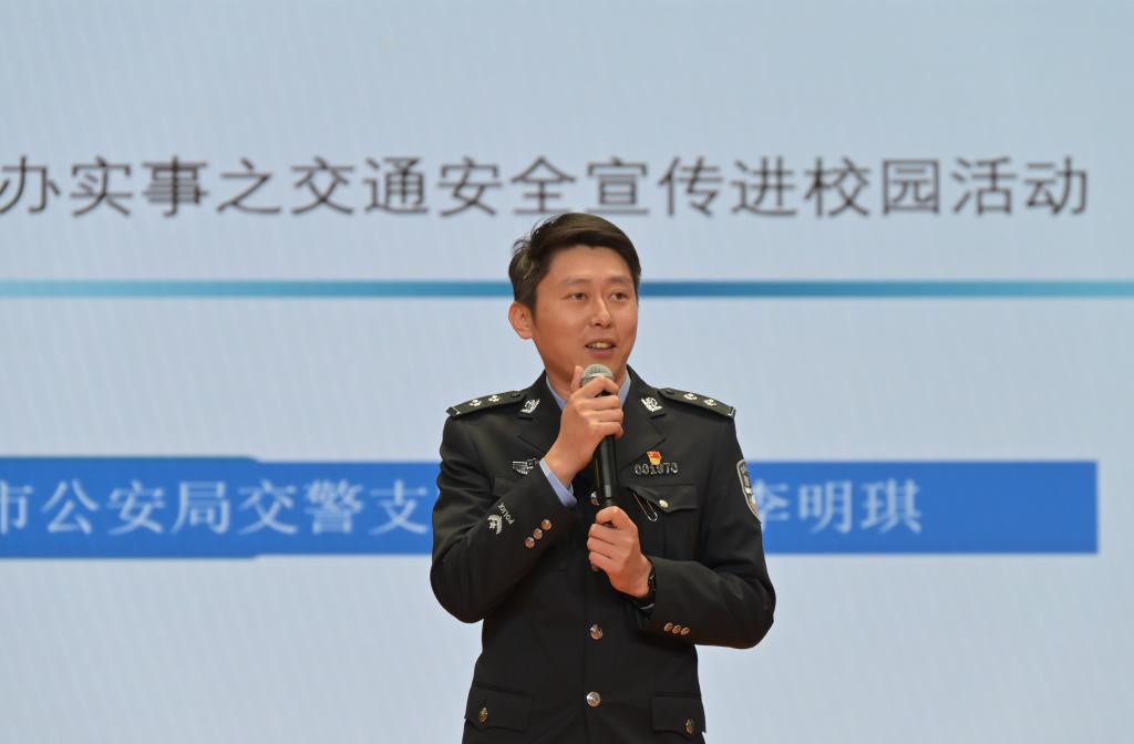 李明琪以案说法,通过列举触目惊心的交通事故案例,分享了自己的工作经验,直观讲述了交通违法行为的危害。他希望同学们认真遵守交通规则,时刻警惕系列危险驾驶行为,养成良好的交通行为习惯。互动交流环节,采用交通安全知识有奖问答方式,同学们在抢答过程中加深了对交通安全常识与交通法律法规的认识,强化“懂交规、知危险、会避险”意识。