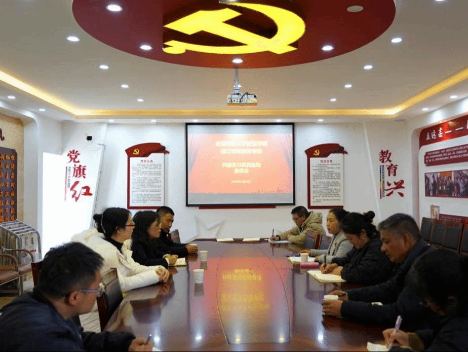 11月29下午,教育学部与丽江特殊教育学校举行教学研究与实习实践基地共建签约暨挂牌仪式,并就特殊教育专业教学研究与学生实习实践开展座谈。丽江特殊教育学校校长杨秀菊、办公室主任和执雄、教务处主任赵双靖及教师代表,教育学部党委副书记朱静虹、就业辅导员刘红军、闫晓飞参加座谈。